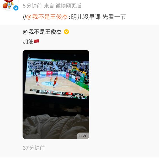 亚洲杯上表现出色的王俊杰因为在NCAA参赛不得不缺席了此次国家队的比赛,身在美国的他专门看了直播,不知道看了这比赛作何感想。